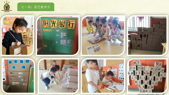 大三班从语言领域出发,打造了“开心小剧场”,孩子们通过讨论剧本、设计人物造型、编排演出一起“纸趣”游戏的海洋里畅游。