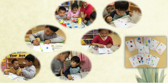 3.叮当实验室 一场大雨,让“海神战队”的战舰化为乌有,但那软绵绵的“湿纸堆”也引来很多儿童的关注,对纸的研究兴趣也由此而生。 怎么保护战舰,什么样的纸不能被浇湿? 湿了的纸箱里有水,有没有小鱼? 什么纸最容易被水变软?有没有不能被水变软的纸? 水能把纸变软?还有什么也能把纸变软? 湿掉的纸怎么办? …… 科学实验室里,孩子们的探索与创作一起改变着传统科学实验室的格局。 (1)色与墨的结合,开发儿童独属的“魔卡”。 纸与墨的演变是中国儿童的独有爱好,与美工室的儿童创作不同,实验室里的孩子,更多的是享受不同浓度的墨能在同一种纸,不同的纸上的不同变化,浓浓淡淡,儿童百试不厌。 玩了墨的变化,很多孩子开始尝试与不同的美术颜料的融合,点一滴红色,汇入两滴黄色,就变成淡淡的橘色,在加上一滴水是厚重的太阳,再滴上几滴水,再涂上几笔就变成了透明的柿子,不同的色彩,更为创意的变化,让更多的孩子也积极参与其中。