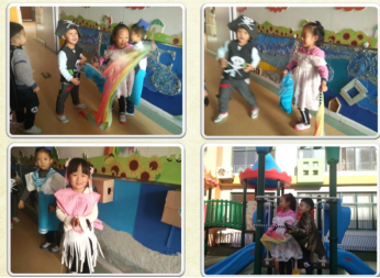 不仅如此,我们还将“纸”融合生日宴、六一庆典、新年联欢等大型活动,组织策划“纸趣”游戏活动。如 “奇思妙想,纸娱纸乐”六一活动,老师、家长和孩子们一起将纸盒、纸箱变身童话剧的道具,一辆辆“汽车”惟妙惟肖、一个个“机器人”英勇威武、变身“乐器”气势恢宏、变身一件件精美绝伦的民族服饰让观众们感受到中华大家庭的团结、感叹纸在大家手中的华丽变身、有趣的衍纸游戏承载了孩子们的心愿和祝福……来自生活的纸品通过孩子们的奇思妙想、探索发现、动手制作而有了新的生命和含义,孩子们也在亲身体验中收获了快乐感受到了浓浓的节日氛围。我们也与家长形成合力,推进幼儿游戏开展,共促幼儿更好的发展。