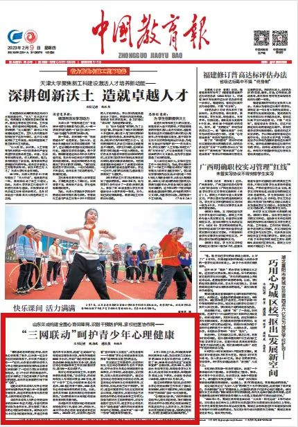 | [中国教育报]山东荣成构建全面心育保障网、识别干预防护网、家校社医协作网——“三网联动”呵护青少年心理健康 | |||||||||
