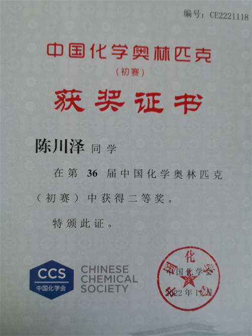 由中国化学会主办,吉林省化学会、吉林大学共同承办的第36届中国化学奥林匹克竞赛成绩揭晓,威海一中6名参赛学子取得佳绩。其中,陈川泽获全国二等奖,王垚超、姜寒、张函瑞获全国三等奖,张嘉琦、张晋豪获山东省二等奖。由于组织得力、成绩突出,威海一中、指导教师杨慧娇,受到中国化学会的表彰。 佳绩的取得,饱含着师生共同努力拼搏的汗水,是威海一中师生精益求精不懈追求的体现,是威海一中立德树人、因材施教所结的硕果。威海一中化学组的老师们立足学生高中三年学业规划,从高一便开始启动竞赛选拔,开设竞赛社团,选派段兴超老师利用校本课时间对学生进行专业训练,培养学生学科思维,提升学生化学素养。在化学组的集体努力下,邵国波老师与杨慧娇老师通力合作,成功组织学生参加本次竞赛,为学生的长远发展助力,为学校的高质量发展增光添彩。
