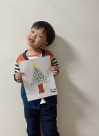 博博:我找到了小花,树上有绿色的叶子还有黄色和紫色的花。