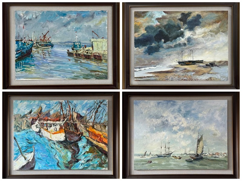 邵文青老师的《瓦伦西亚的港湾》与潘雪琦老师的《海与船》,以海岸为主题,吸引众多同学驻足欣赏。画面中,澄澈的海景与满载故事的渔船相映成趣,既具视觉张力,亦洋溢蓬勃的生命气息。 更有多名教师聚焦威海本土风貌,将家乡的壮美海景定格于画布之上,流露出对这片土地的深沉眷恋。 这些作品既见学术之严谨,亦不乏艺术表达的灵动,清晰映射出教师们日常教学中的思考轨迹与探索精神。