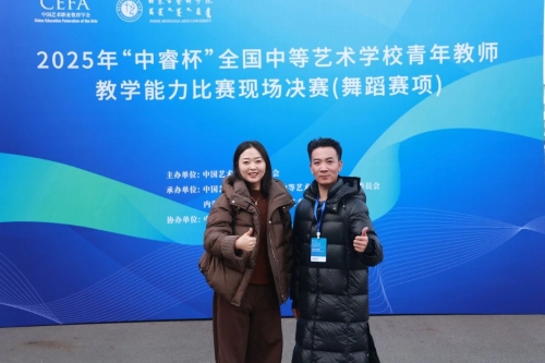 近日,2025年“中睿杯”全国中等艺术学校青年教师教学能力比赛在内蒙古艺术学院圆满落幕。本次比赛由中国艺术职业教育学会主办,内蒙古艺术学院附属中等艺术学校承办。威海艺校高键老师凭借精湛的教学技艺、创新的课堂设计以及扎实的专业素养,在舞蹈表演赛项中脱颖而出,一举斩获单项二等奖与全能二等奖。威海艺校获评优秀组织奖,充分体现了学校整体教育教学的深厚底蕴与师资队伍的优良素养。 高键老师在舞蹈表演赛项中表现亮眼,凭借对“跳、转、翻”等高难度技术技巧的精准掌控,深情演绎了热巴鼓舞蹈剧目《梦回故里》。他以规整的鼓点节奏、刚柔并济的舞姿,准确传达出剧目的情感内核,生动展现了国家级非物质文化遗产——热巴鼓的独特艺术魅力。这一成绩不仅体现了高键老师过硬的专业能力,也折射出我校艺术教育工作者扎实的专业功底与真挚的教育情怀。 赛场之外,威海艺校舞蹈教研室主任曹桂玲与高键老师还应邀参加了内蒙古艺术学院组织的中国民族民间舞(蒙古族方向)公益培训。此次研修为他们提供了深入学习蒙古族舞蹈精髓的宝贵机会。通过深度的专业交流与持续的技能打磨,两位老师实现了教学能力与专业视野的双重提升,并将为我校舞蹈教学注入新的活力与创新动能。 此次大赛的优异成绩,既是学校舞蹈专业深厚教学积淀、鲜明育人特色与过硬专业实力的集中展现,也是学校持续加强师资队伍建设、深化教学改革成果的一次全面检验。威海艺校将以此次荣誉为新的起点,持续深化“以赛促教、以赛促改”机制,把比赛中汲取的创新理念与实践经验融入日常教学;以“以赛促培、以赛促研”为常态化路径,不断推动教师专业能力迭代升级,切实将赛场的“高光时刻”转化为育人实效的“长效动能”,为艺术教育高质量发展持续赋能。 |