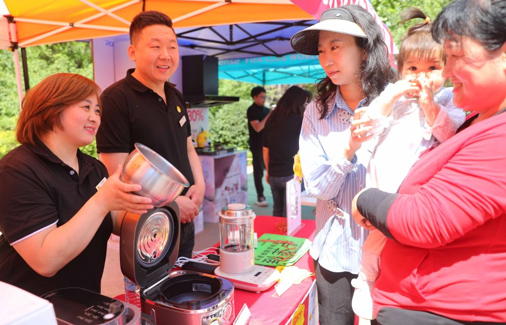 5月24日,在河北省秦皇岛市海港区白塔岭街道半岛书香社区开展的消费品以旧换新进社区活动中,商家为居民介绍家电产品及家电以旧换新补贴政策。曹建雄 摄 通过活动,商家拓展了下沉市场,让政策红利精准触达消费末端,同时为线下门店吸引流量。截至目前,秦皇岛市消费品旧换新活动已经面对面普及政策超10万人次,拉动销售额超4.7亿元,交易超2.5万笔。 “几次下来,现场销售额达到了30万元,也明显提升了门店的客流量。”某商家销售经理王冠南说。