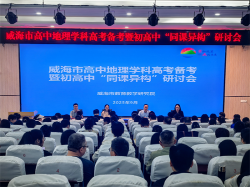 为优化新高考背景下高三一轮复习备考策略,进一步探索初高中地理教学的有效衔接方法,9月25日,威海市地理学科高考备考暨初高中“同课异构”研讨会在荣成市第三中学举行,全市初高中地理学科教研员及骨干教师共计320多人参加培训。 本次会议聚集初高衔接和高考备考两大主题,通过初高中“同课异构”课例展示、初高中衔接策略研究以及高三一轮复习备考实施建议等,为初高中地理教学的有效衔接和高三一轮复习高效备考指明了方向。 “同课异构”课例展示围绕“气候的分布、特征和成因”主题展开。威海实验中学北校区张艳老师、荣成市第三中学赵琨老师分别执教课例《燕舞南北·气候探因》、《尺度视角下气候的成因与分布分析》,两节课例立足各自学段的学情,体现地理思维的进阶培养和素养的螺旋提升,并从单元整体教学的角度为与会教师提供了典型的初高中有效衔接和高考精准备考教学范例。 威海高区神道口中学张开红老师和山东省文登第一中学孙丽蓉老师分别做了经验交流,系统展现了初高中地理教学衔接的实践路径,强调通过问题驱动、案例探究和学段协作实现学生核心素养的逐步提升。荣成市第三中学于慧老师带来专题讲座《大单元·深学习:高三地理一轮复习新策略》,系统分享了高三一轮复习大单元深度学习的案例设计流程,从学科逻辑、微专题剖析到情境化教学实施,为教师提供了具体可操作的实践路径。 最后,市教研院高中地理教研员以《核心素养导向下初高中地理衔接的教学建议》为题进行专题讲座,从“学习起点”“学生认知规律”“新课改形势下中高考命题方向”等角度,深入剖析了初中与高中地理教学之间的差异与内在联系,从研究必备知识的衔接点,聚集关键能力的提升点、学科思维的进阶与深度学习等方面,为初高中地理教学衔接的有效实施提供了建议。 本次活动在知识、能力和素养的贯通培养、山东新高考教学备考等方面进行了探索,推动了“教学共研”“资源共建”“成果共享”,为优化新高考背景下的高三一轮复习备考策略和实现初高中地理教学的有效衔接奠定了基础。