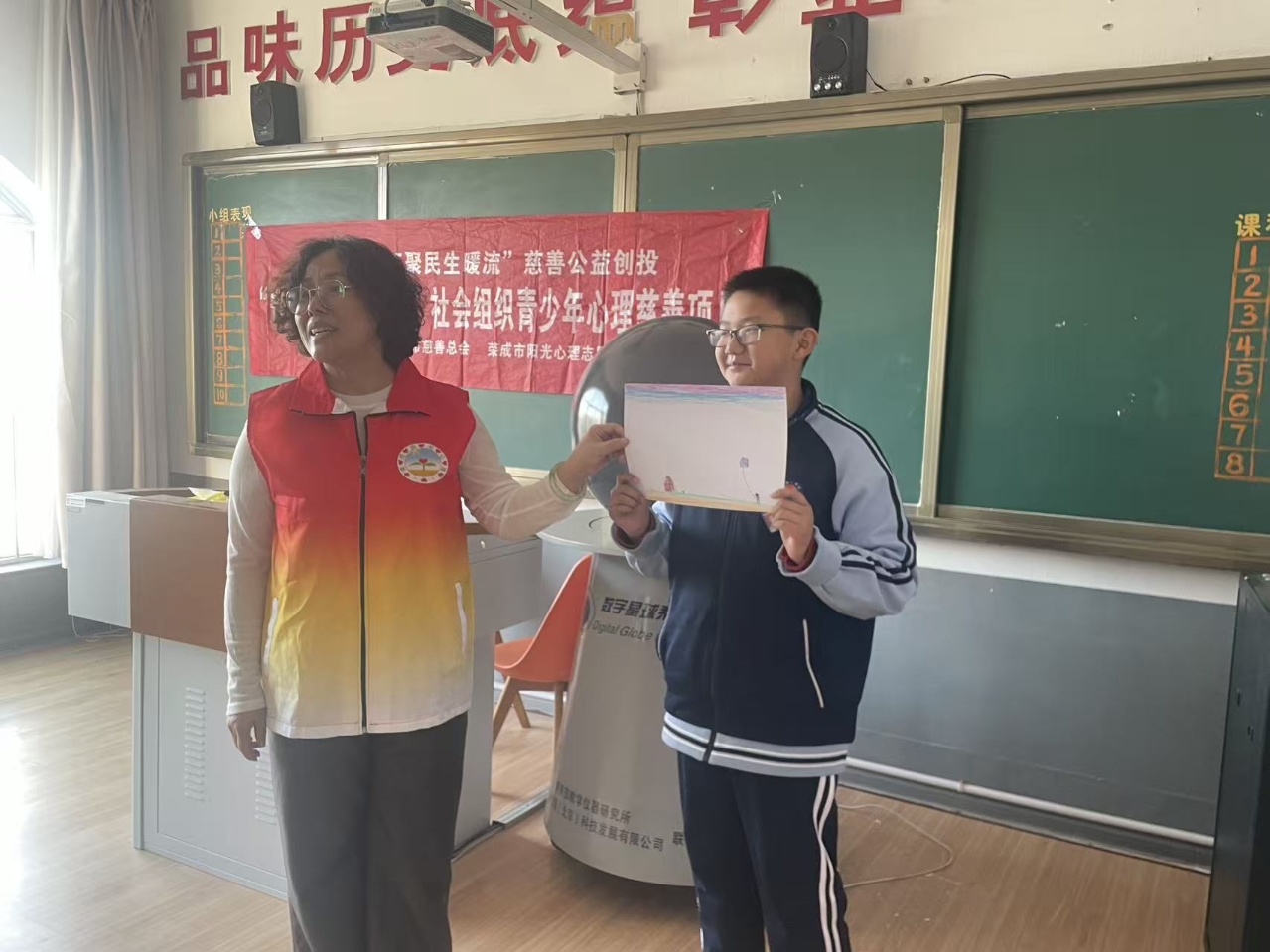 3月12日,荣成市第二十七中学迎来荣成市阳光心理志愿服务团第二次入校服务。经过前期需求调研,团队将27中列为服务对象之一,结为友好合作单位。本次活动主题是团体辅导——房树人绘画。 志愿团队负责人、国家二级心理咨询师夏丽燕老师首先带领同学们进行了简短的放松训练,跟随夏老师的引导语,大家放松了身体,放空了心灵。志愿者助手发给大家纸和笔,让每位同学在纸上画出“房、树、人”。任情绪流动,任思绪驰骋,同学们手中笔在 A4纸上灵动描画,一幅幅作品逐渐成型。在舒缓的背景音乐的激发下,同学们潜意识中各种“情结”幻化为艺术符号,在作品中“显化”。 分享环节,夏老师用启发性连环式提问,让同学们看到隐藏在心中的“结”,勇敢面对看到的种种矛盾,并在自己的思考和同伴的建“出招”中找到解决的方法。一位女生惊奇的发现,自己无意中画出的三朵云,原来是一直以手机游戏来逃避的“自卑”、“学业压力”和“人际困扰”,以前只是感到莫名的不快乐,拼命用手机游戏来“缓解”,结果越来越糟糕。现在经夏老师的指点,她瞬间明了:培养自信、步步为营、主动“出击”才是解决“不快乐”的“王道”。还有一位家庭关系复杂的男生,没跟母亲一起生活,他一直压抑着对母亲的思念,在画中有所体现。夏老师引导他看到思念,并鼓励他表达。当他含泪喊出“妈妈我想你”时,郁结的情绪流动起来,人慢慢变得更有力量了。50分钟的活动即将结束,同学们意犹未尽,夏老师和孩子们约定再一次相见,期待下一次的精彩。 专业心理服务团队进校园,宏观上补足了学校“心理教育力量不足、专业性不强”的短板,在实操层面,能够减轻受助学生的防御,使心理辅导迅速起效。下一步,学校将继续邀请专业团队通过“中学生心理健康讲座”“家庭教育讲座”,面向师生和家长的“个体咨询和团体辅导”,以自我成长、情绪管理、人际交往为主题的心理课等形式,服务学校,提升师生家长的心理健康水平,落实“健康第一”的理念,助力“健康学校”建设。 |