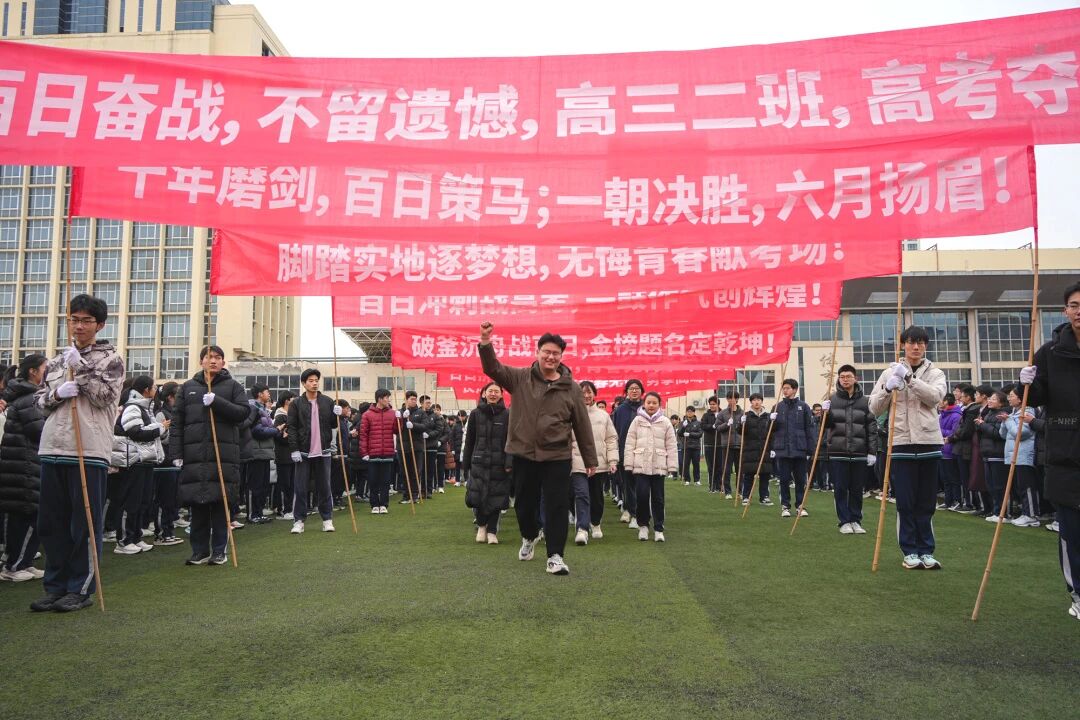 今日惊蛰,春雷始鸣,万物竞发。在这草木萌动、生机勃发的时节,威海二中全体师生满怀期盼与憧憬,分南北校区同步举行2026年春季开学式暨54级高考动员大会,共迎新学期,为高三学子冲刺高考呐喊助威! 01. 升旗仪式:庄严开启新征程 开学式在庄严的升国旗、奏唱国歌仪式中拉开帷幕。五星红旗冉冉升起,全体师生肃立行注目礼。这一刻,家国情怀与青春梦想在心中交织,新学期的奋斗征程就此启航。 活动分别由李玥彤同学(南校区)和王科翰同学(北校区)主持。 02.通报表扬:榜样引领向前行 南北校区各年级主任依次登台,宣读期末统考中成绩优异的学生名单。 一份份名单,记录着学子们的勤勉与坚持;一阵阵掌声,传递着全体师生的敬意与期许。榜样的力量,如春风化雨,激励着每一位二中学子见贤思齐、奋勇争先。 03. 领导致辞:惊蛰寄语催奋进 学校书记姜荣和校长窦常兴以惊蛰节气为引,分别于南北校区深情寄语全体师生,号召全体二中人在这个春天彻底觉醒,以昂扬之姿迎挑战、创辉煌,为高三学子加油鼓劲。他们强调,新学期要深入贯彻党的二十届四中全会精神,强化教育对科技和人才的支撑作用。要进一步突出思政教育的重要性,深化课程思政改革创新,筑牢育人根基。同时要践行“健康第一”理念,切实提升学生体质健康水平,为全面发展打下坚实基础。愿全体师生以奋斗姿态砥砺前行,以青春力量为民族复兴添砖加瓦。 04. 师长寄语:重重祝福壮征程 高三级部李清华主任和副主任王琳琳进行了慷慨激昂的讲话,吹响了决胜高考的冲锋号角。前行的路上,有学校掌舵领航,有级部保驾护航,更有全体教师同心同向、并肩作战! 高三语文组老师们的诗意温暖、数学组老师们的严谨缜密、英语组老师们的开阔视野、物理组老师们的探索精神、化学组老师们的变化万千、生物组老师们的生命力量、政治组老师们的思想引领、历史组老师们的厚重积淀、地理组老师们的大地胸怀——每一句祝福都是师恩的流淌,每一份嘱托都是前行的力量。 05. 学生代表发言:青春誓言震云霄 高三学生代表邢甜甜(南校区)和李祯迪(北校区)上台发言并领誓: “我以青春之名义,庄重宣誓: 十年寒窗,百日征程;时不我待,分秒必争; 吾拳紧握,誓在必赢;二六高考,我必成功; 明日二中,以我为荣!” 铮铮誓言,响彻云霄!这是圆青春梦想的动员令,是扬人生志气的进军号,是抒必胜豪情的奏鸣曲! 高一高二的学弟学妹们也为高三学长送上最热烈的加油: “高三加油!高三必胜!二中加油!二中必胜!” 声声呐喊,饱含深情;阵阵助威,催人奋进。这一刻,整个校园被青春的热血点燃。 06.过励志门:昂首阔步向未来 带着学校、老师和同学们的美好祝福,在《我相信》《壮志在我胸》激昂的歌声中,高三各班同学依次走过励志门,开启94天的逐梦之旅。班级口号响彻校园,青春力量汇聚成光。高一高二同学及全体教师分列两侧,呐喊声此起彼伏,将活动气氛推向最高潮。 走过励志门,各班同学回到教室进行横幅签名、填写梦想卡片,班主任召开了以《决战高考,为梦而战》为主题的高考动员主题班会。一笔一画,写下的是名字,镌刻的是信念;一字一句,许下的是心愿,锚定的是未来。 94天, 是冲刺的94天, 是蜕变的94天, 更是圆梦的94天! 愿高三学子: 凌风破浪击长空, 擎天揽日跃龙门! 愿威海二中全体师生: 脚踏实地,奋勇拼搏, 会当凌绝顶,一起向未来! |